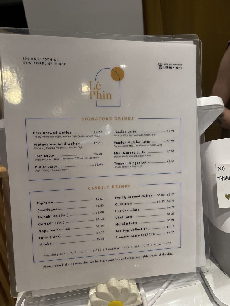Overall, Le Phin exudes a welcoming vibe and a commitment to quality that keeps customers coming back for more. Whether you're in the mood for a classic Vietnamese coffee or a unique specialty latte, this hidden gem in East Village is sure to satisfy your caffeine cravings.